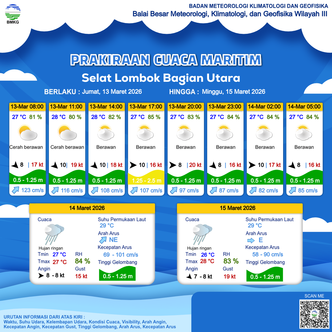 Prakiraan Cuaca Perairan Selat Lombok Bagian Utara