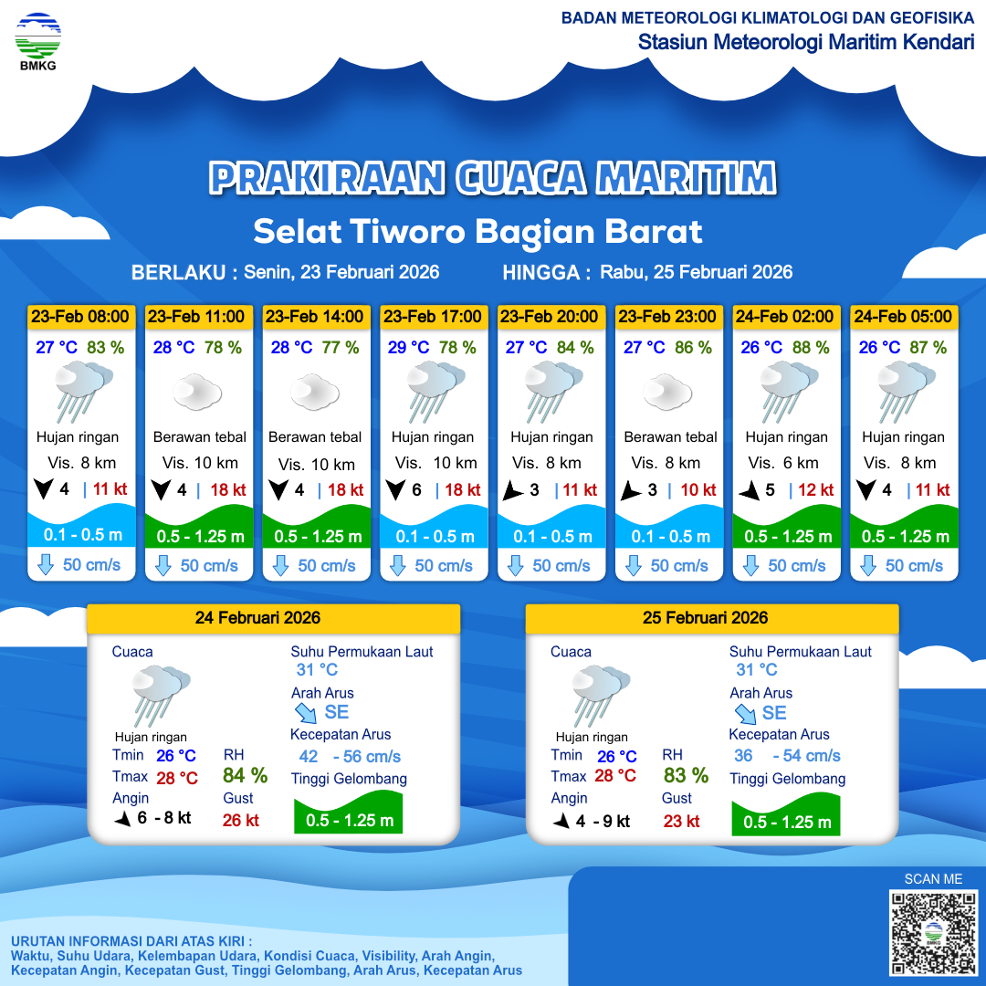 Prakiraan Cuaca Perairan Selat Tiworo Bagian Barat