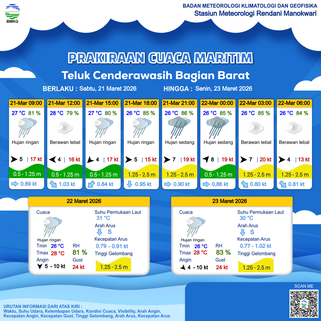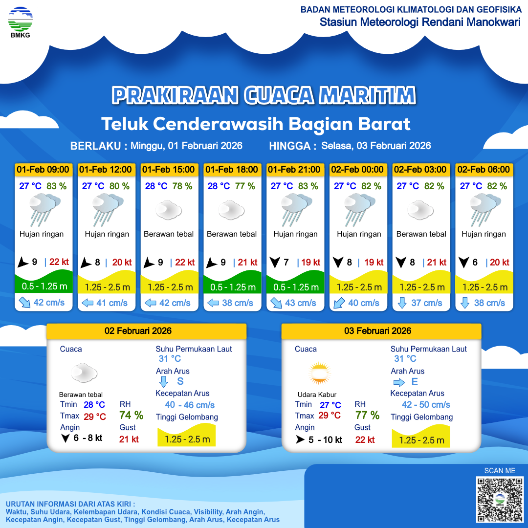 Prakiraan Cuaca Perairan Teluk Cenderawasih Bagian Barat