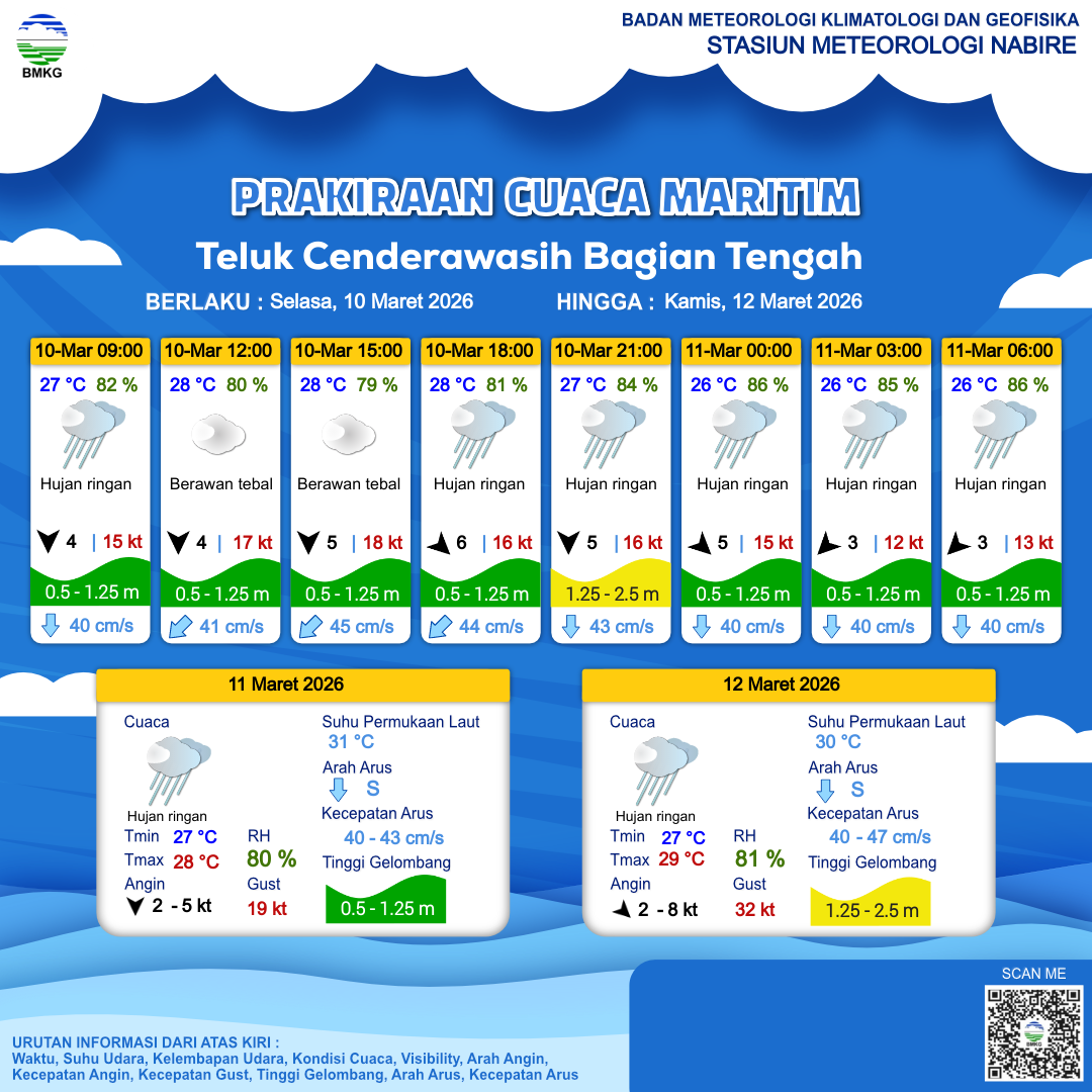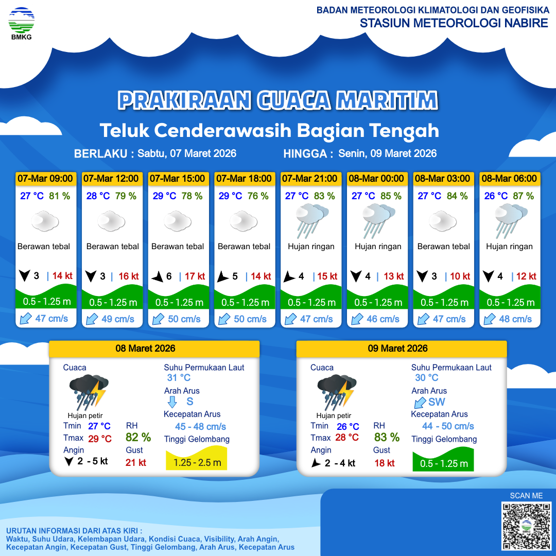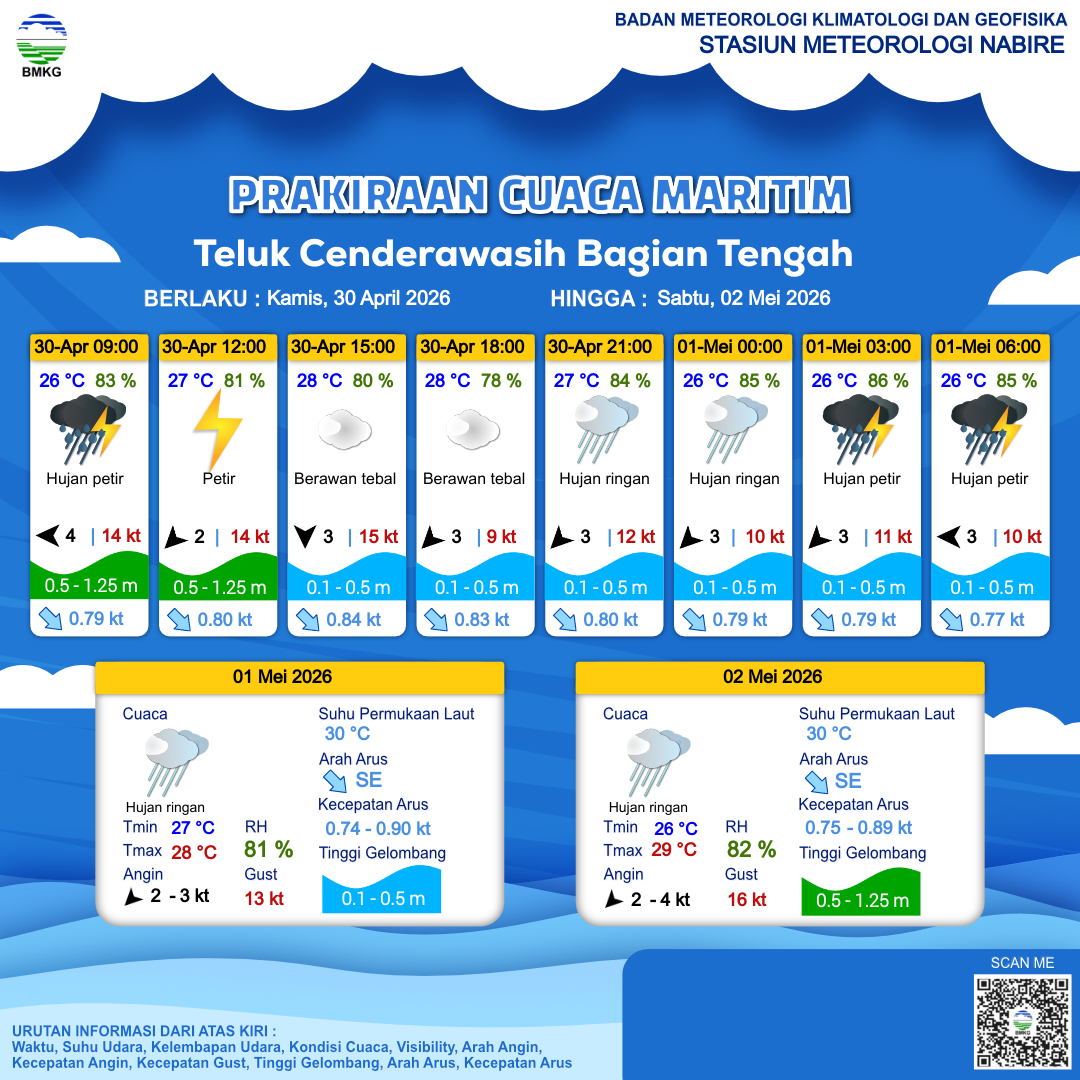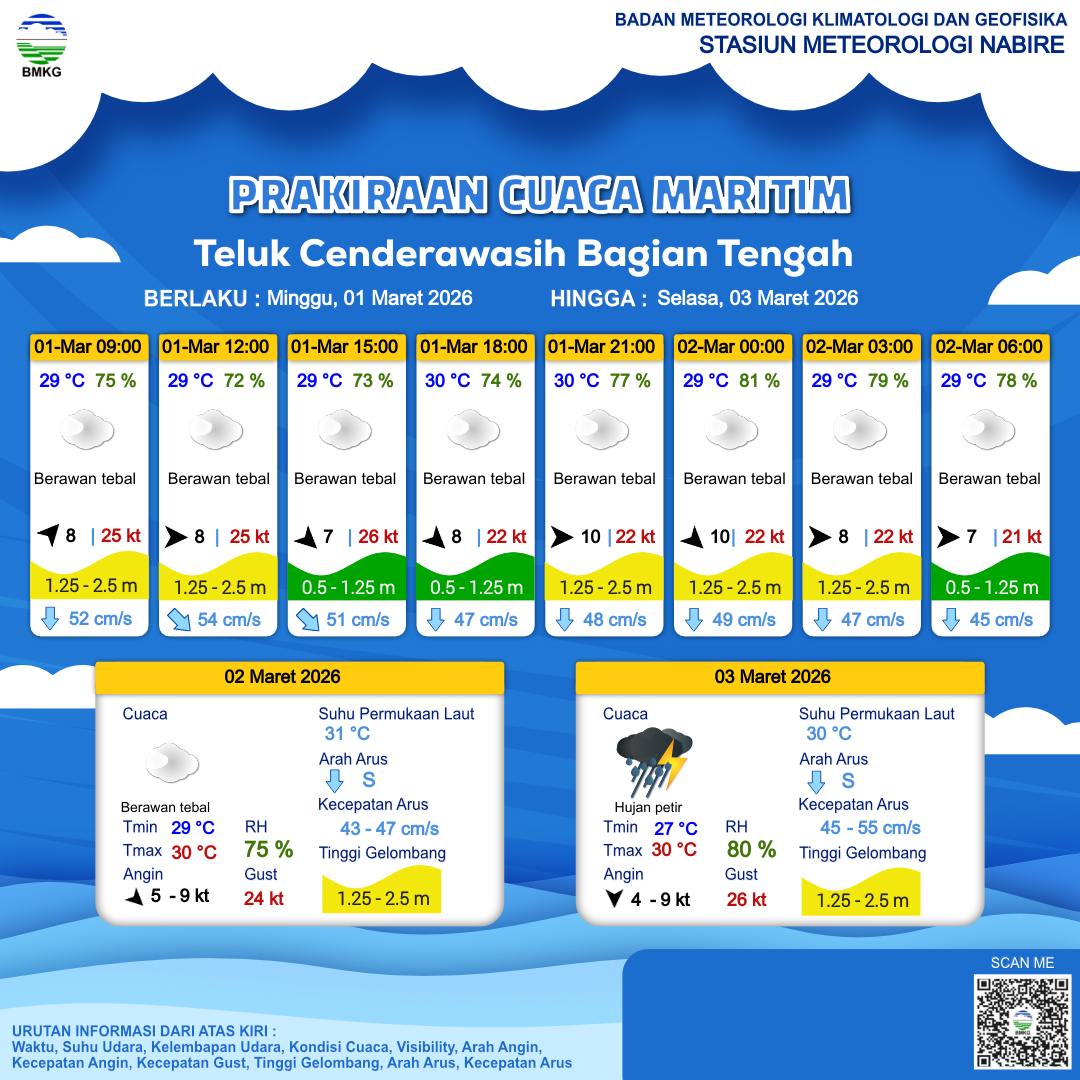 Prakiraan Cuaca Perairan Teluk Cenderawasih Bagian Tengah
