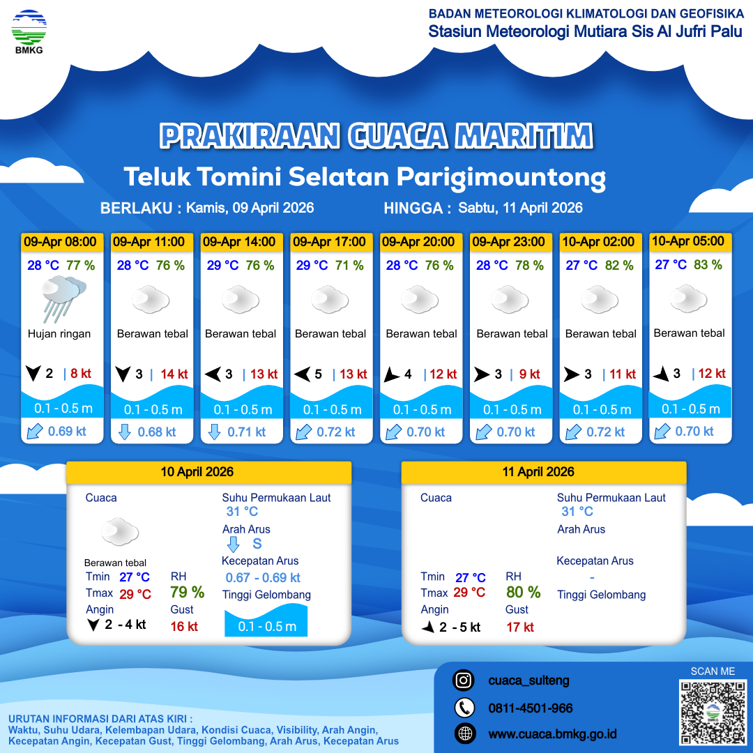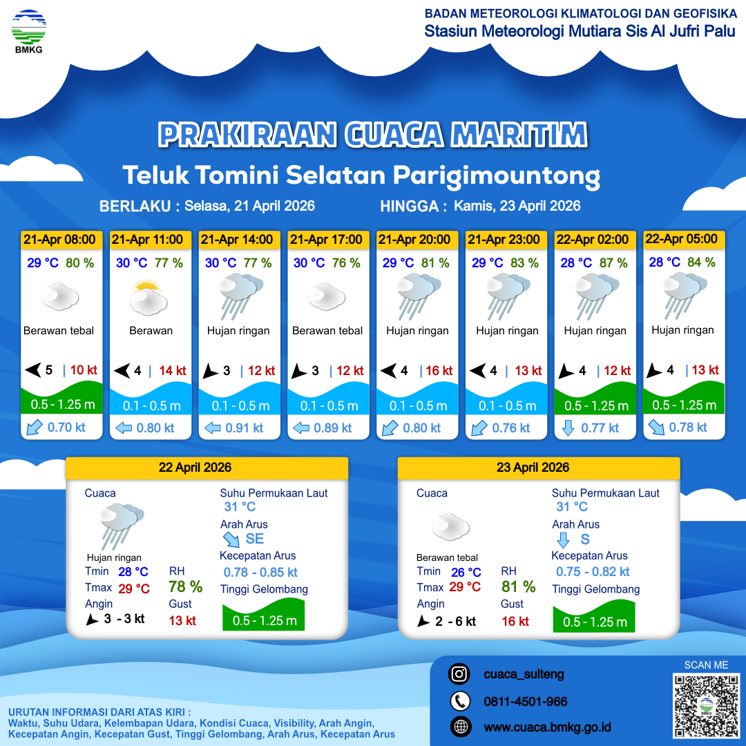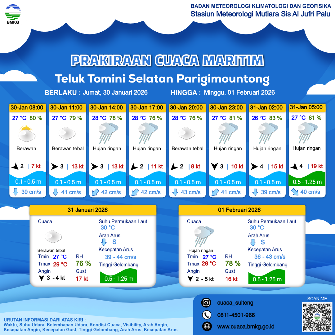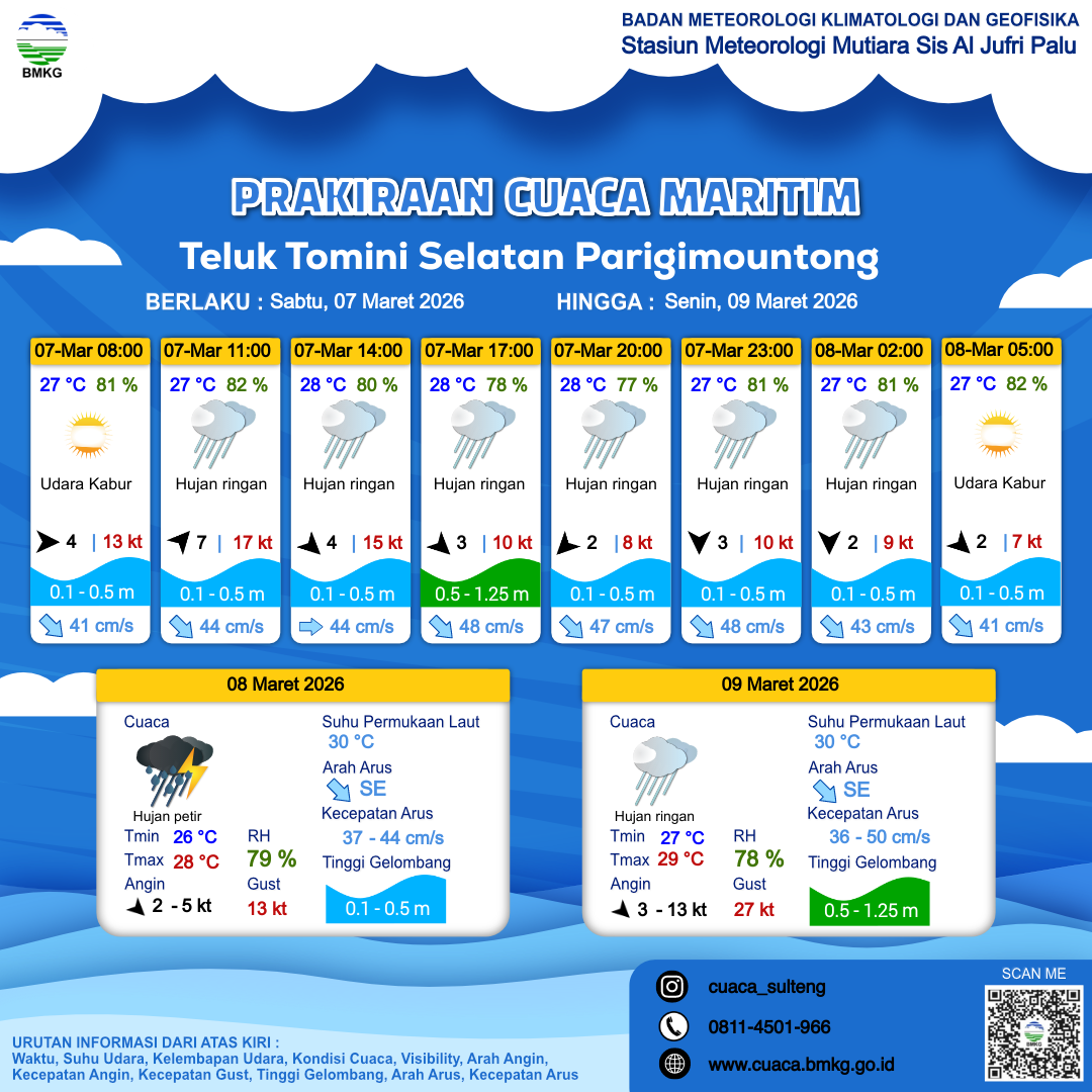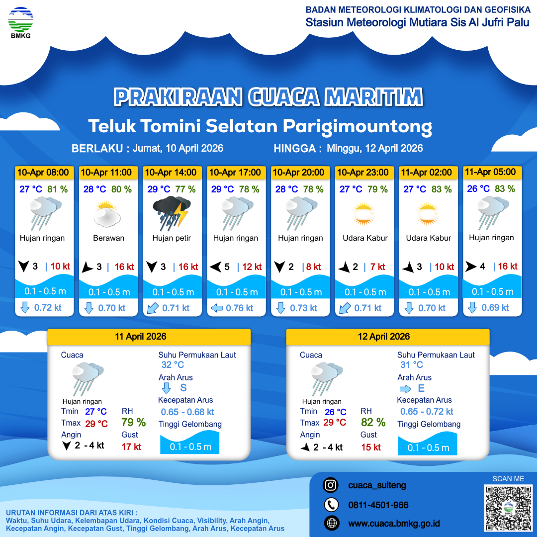 Prakiraan Cuaca Perairan Teluk Tomini Selatan Parigimountong