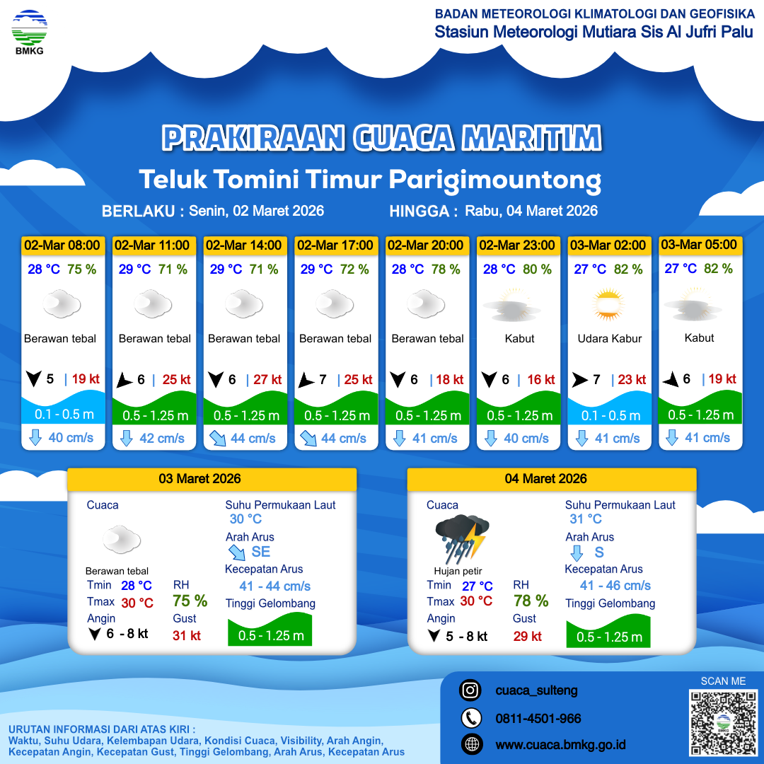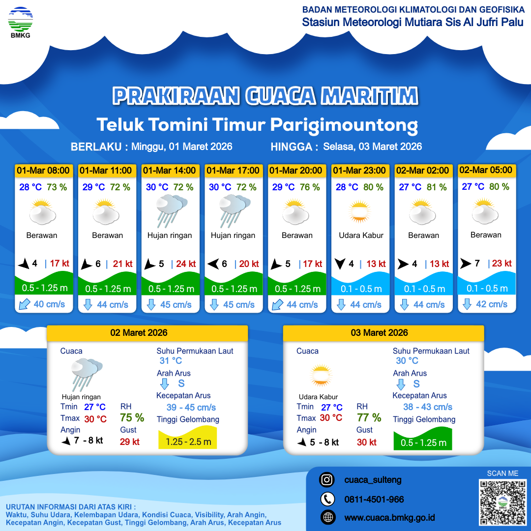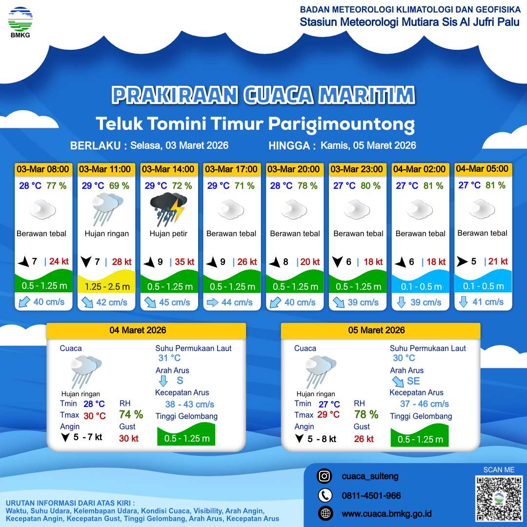 Prakiraan Cuaca Perairan Teluk Tomini Timur Parigimountong
